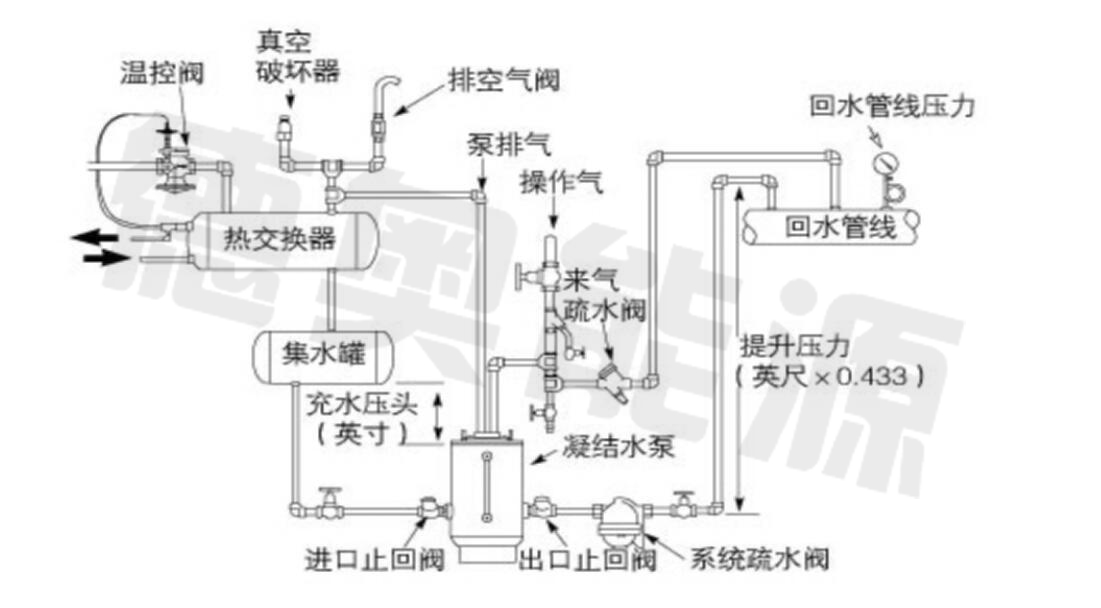 3.氣動凝結水回收裝置有開/閉兩種型式,每種型式根據回收區(qū)域用各熱設備工況及用熱系統具體情況進行進行針對性配置;