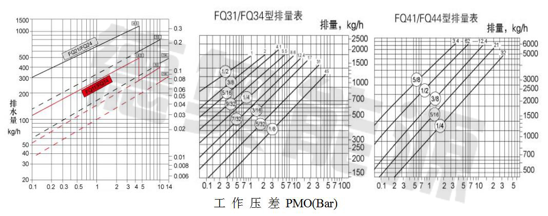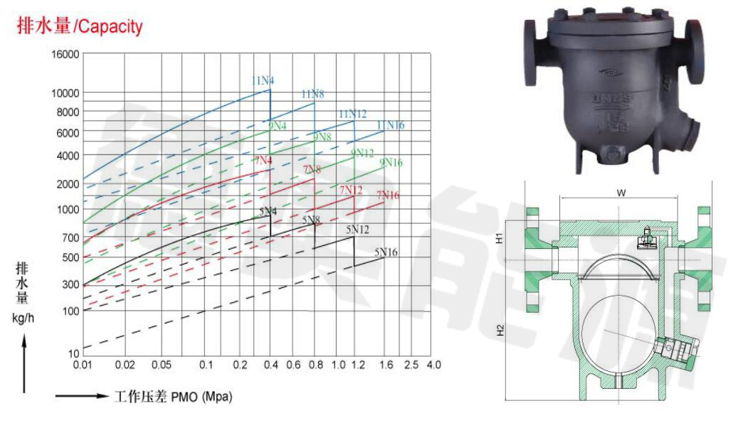 8、選型時請?zhí)峁┕ぷ鲏毫?、工作壓差、凝結水量、工作溫度、連接方式及標準;根據(jù)用汽設備正常工作時可能產(chǎn)生的凝結水量,乘以修正系數(shù)(一般2-3)得出排水量,然后對照排水量和壓差進行選擇。